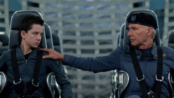 This image released by Summit Entertainment shows Asa Butterfield, left, and Harrison Ford in a scene from "Ender's Game." (AP Photo/Summit Entertainment, Richard Foreman)